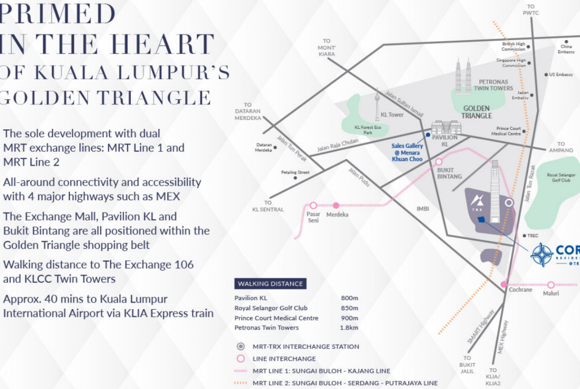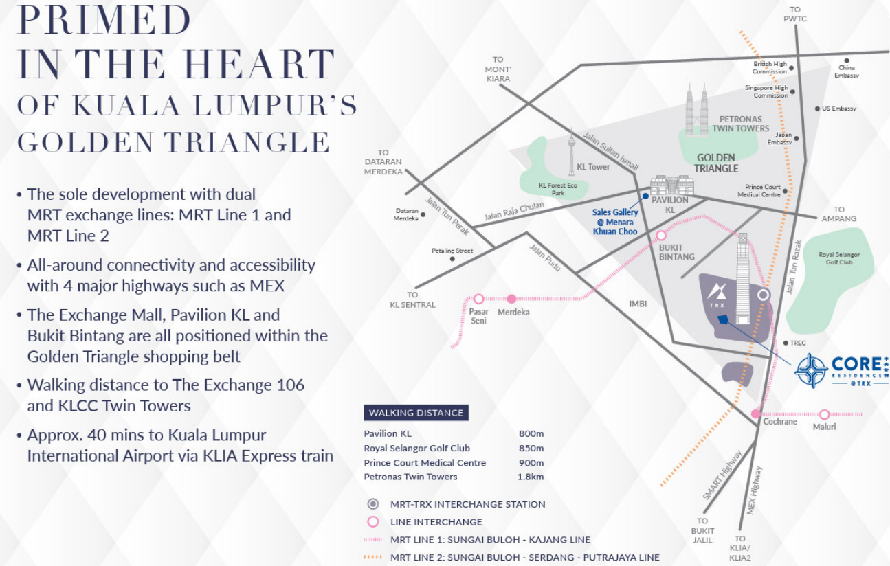 Going beyond the excellent connectivity offered by the best address in Kuala Lumpur, lifestyle convenience sets the pace of city living here. Walkability throughout TRX as a whole is truly on another level with multi-level vehicular flow in place, and pedestrian connections at ground level. A place that integrates work and leisure, TRX offers upbeat city living with The Exchange Mall, world-class office buildings, modern residences and more.