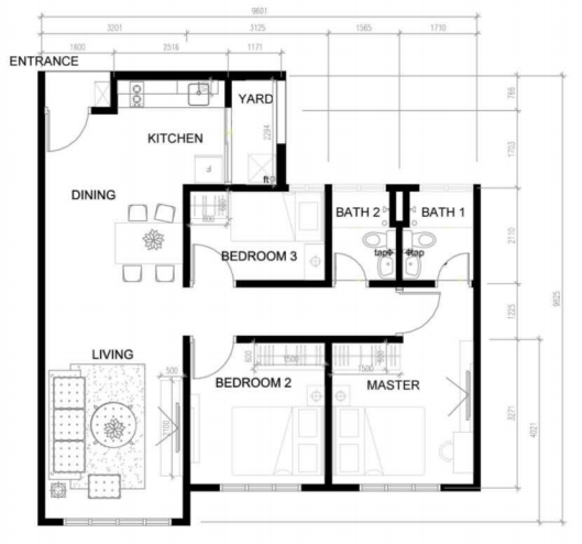 Land Area 850 Sq Ft
